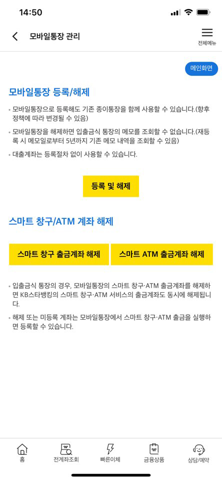 모바일 통장이라는 메뉴가 있지만 이건 조금 다른 메뉴이므로 잘 선택해주세요.