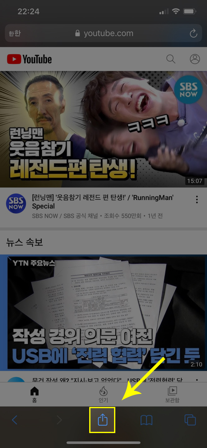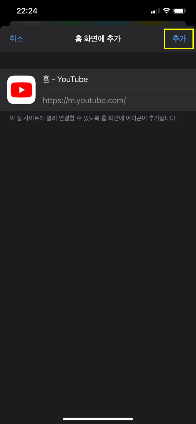 스마트폰의 경우 대부분 앱을 설치하여 사용하시거나 기본적으로 유튜브 앱이 설치되어있습니다. 그래도 혹시 부득이한 상황으로 인행 따로 바로가기를 만드셔야 한다면 아래의 방법을 참고하시기 바랍니다.