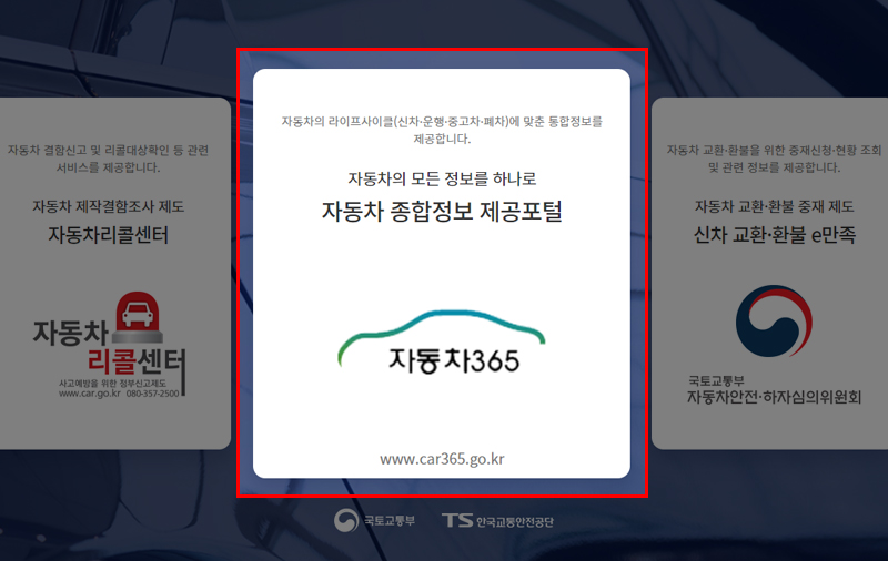그럼 자동차365라는 자동차 종합정보 제공 포털 사이트에 접속하실 수 있습니다. 가운데에 있는 자동차 365를 클릭하신 뒤 홈페이지 위쪽에 있는 기타 메뉴를 클릭합니다.