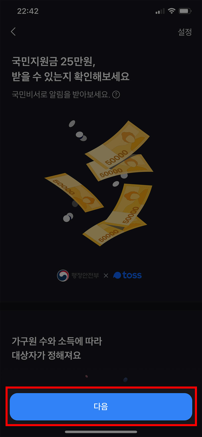 다른 앱에서는 국민지원금 대상 확인을 바로 할 수 없었던 점과 인증서를 통해 인증하는 등 불편한 점이 있었습니다. 하지만 토스 앱은 최근 주식 서비스에서도 느낄 수 있지만 더욱 쉽고 편리하다고 느꼈습니다.